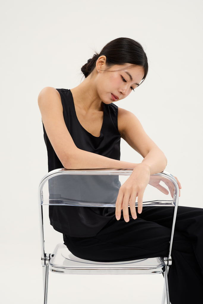 ALICE SATIN TOP in black