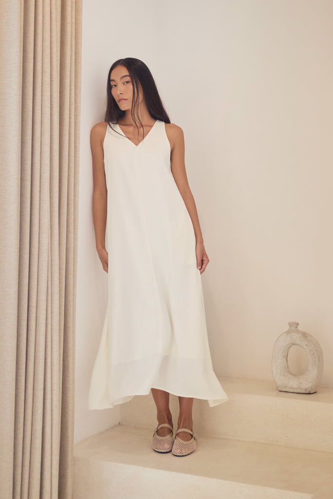 Though it looks long, this dress is suitable for anyone from 153cm. Available in Ivory, Cocoa, Black, Navy and Platinum.